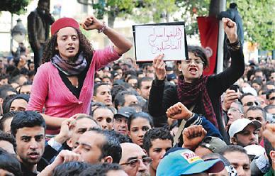 في تونس بدأت ثورة مسلحة بالمدنية والبنطلون والأمل، فالدشاديش والجلابيب وأكياس النقاب عقبة نتعثر بها أثناء المشي، ولا تصلح للكر والفر.