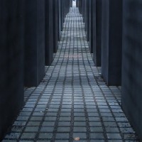 صمم المعماري بيتر إيزنمان نصباً للضحايا اليهود في برلين. النصب عبارة عن مساحة شاسعة من الأرض البور نصبت فوقها كتل حجرية رمادية تشبه القبور. لكنها أيضا تشبه المدن الخراسانية المهجورة. وحين تنظر إلى هذه المساحة وهي تعج بزوارها تدرك منذ اللحظة الأولى أنك أمام مدينة ميتة. حيث لا تستطيع الذاكرة أن تبعث بعض النبض في الموت الثقيل الذي حل بهذه المدينة.