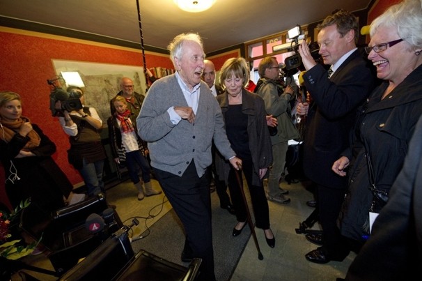 والآن ، وبعد أن أصبح في الثمانين من عمره و تقاعد من الكتابة سمع هذا النداء أخيرا بينما كان جالسا وهو يشاهد الإعلان للجائزة على التلفاز . و عندما سئل عن شعوره ، كونه السويدي الأول لأربعة عقود يفوز بجائزة الآداب قال للمراسلين : “جيد جدا “.