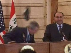 حادث عاديّ هو، لو جرى في البرّ الغربيّ حيث يقذف المواطنون زعماءهم بالبيض الفاسد والكعك في ساعات الضجر، ولكنّه غير ذلك في تقاليدنا العربيّة حيث لا يُلقَى أولو الأمر إلاّ بضرب الأكفّ وصيحات الفداء. بل لو أنّ صحافيّا عربيّا عاثر الحظّ ضرط في مؤتمر يعقده حاكم عربيّ – لا قدّر اللّه – لذهبت ريحه وثكلته أمّه من ساعته!