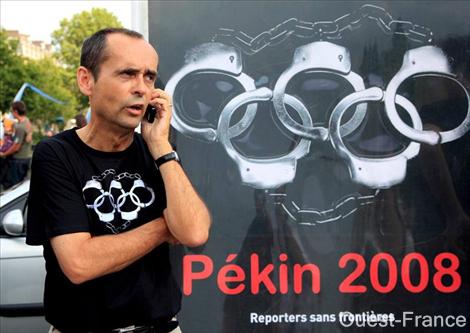 وقبل اثنتي عشرة ساعة فقط من بدء الألعاب الأولمبيّة نجحت ” مراسلون بلا حدود ” في تنفيذ ” انقلاب ” إعلاميّ كبير حين تمكّنت من قرصنة تردّدات إذاعيّة على ” الآف آم ” في بيكين ( نفسها ! ) وأدانت انتهاكات الصين حرّية الصحافة والتعبير وطالبت، على الأثير، بإطلاق الحرّيات الإعلاميّة.