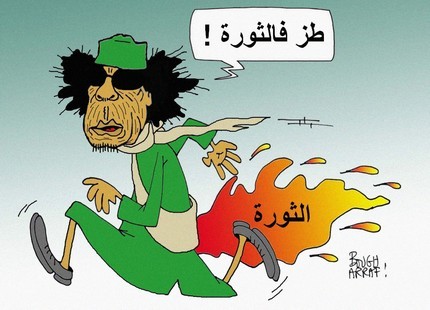 فعند أوّل امتحان حقيقيّ، ناداه شعبُه أنْ تعال نقلْها “طز” واحدة في وجه الاستبداد والفساد، لنفتح صفحة تليق بالشعوب الكريمة الحيّة، فبانت العورات، وانكشفت السوءات. وإذا “طز” كلمة السرّ يدّخرها لشعبه دون العالمين. وإذن، فقد راح العقيد يقتل شعبه بما تاح له من سلاح ثقيل، وإذا كتائبه تستكثر على الأسرى حتّى ميتة سريعة، فتتخلّص منهم خنقا أو تحريقا.