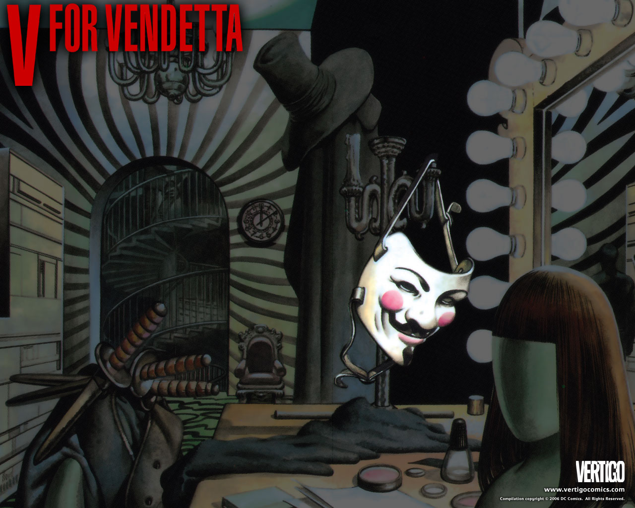 ومن هنا نجد أن الإعلامي غوردون الذي تذهب إليه إيفي للاحتماء، تكتشف أنه يشاطرها نفس الآراء، ولكنه يخفي ذلك خلف قناع منذ سنين عديدة، كما هي تخفي مشاعرها منذ مقتل والديها، ويبرز هذا القناع في طبيعة العيش التي يعيشها المرء كي يخفي ميوله ويبعد الظن عنه، حيث يضطر غوردن إلى دعوة فتيات صغيرات ومنهن إيفي إلى شقته، كي يظن رجال الأمن أنه شخص معروف بحبه للنساء ولا يتعاطى السياسة قط.