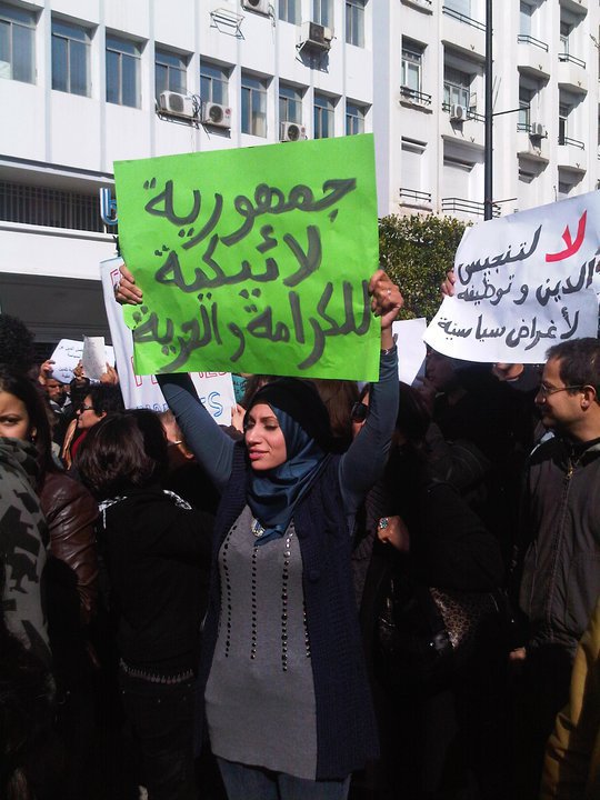 قد يفاجأ صاحب التعليق الواثق من معارفه كما قد يستغرب الواقعون في الالتباس التاريخيّ كيف تكون العلمانيّة مطلبا حيويّا، وضرورة لا تحتمل الإبطاء، وأنّ المطالب التي رفعها في تونس هؤلاء المتظاهرون من نساء ورجال، وشبّان وشابّات هي بمثابة الدعوة إلى عقد محايث يلزم شركاء الوطن بعيش مشترك لا يقوم على العنف والإكراه والتسلّط والتعصّب والحروب المقدّسة ولا على الحقّ الإلهيّ. وكان من اللافت والمبهج في آن مشاركة العديد من الشابّات والنساء المحجّبات في المسيرة، ورفعهنّ لافتات ترفض التعصّب والإرهاب وتدعو إلى التسامح وحرّية المعتقد.