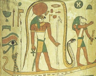 بالفعل، كان لدى المصريين وعي بوهن الحياة ويترجم ذلك في أساطيرهم بعدم زوال المحيط العظيم بعد الخلق. فقوى السديم أو كل ما هو غير مخلوق هو مرميّ فقط في المحيط الخارجي للعالم المنظم. حينما تنتهي الشمس في رحلتها اليومية إلى المغيب في “الأفق الغربي للسماء” ينبغي عليها أن تصارع طول الليل ضدّ الحية أبوبيس التي تجسد قوى الشر بامتياز والتي تحاول منع تقدّم المركبة التي يبحر عليها ري. وفي كل صباح تنتصر الشمس على الثعبان وتتمكن من البزوغ من الشرق. ومع ذلك تبقى قوى الهدم مهددة الخلق دوما. والعالم الذي أراده الصانع في وهن. لقد أبعد هذا الأخير قوى الشرّ تلك ولكنه لم يقض عليها تماما وهي لا تنتظر سوى العودة من جديد. يعلن فصل مهم من “كتاب الأموات”، وهو الوحيد الذي يكتسي طابعا خلاصيا أنّ هذا “السائل الجامد”، سيغطي العالم من جديد في نهاية الزمن، حينما يهدم الخالق ما بناه ويتحوّل هو ذاته إلى أفعى.