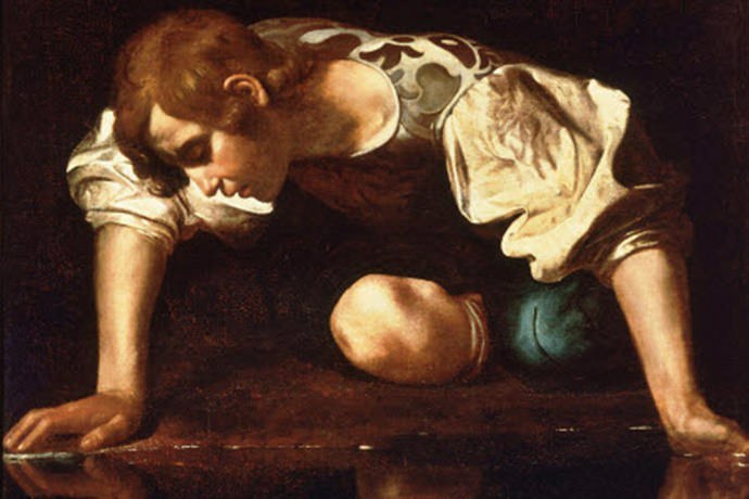 تحت جلد كلّ مرآة، يوجد نرسيس، الإله الذي عاقبته الآلهة بحبّ نفسه، قصاصاً منه لصدّه المرأة التي أحبّته، “إيكو”، ابنة الهواء والتراب التي تفاخر عليها بجماله فلعنته الآلهة. نعم، الآلهة تثأر بالحب. وما قتل نرسيس كان مخبّأ له في قدره منذ البداية. قالت النبوءة: “هو يبلغ الشيخوخة فقط إذا هو لم ينظر إلى نفسه ولم ير صورة وجهه”. كانت لعنته صامتة ونائمة في عينيه. ويبدو أنّ لفظة “نرسيس ” اليونانية (نركيسوس) كانت تتضمّن “ناركي” أي “النوم”: ثمّة نومٌ ما في عينيّ كلّ هوية، ليس أخطر عليها من أن ترى نفسها، أو تحدّق في نفسها. وهكذا حين قاده الظمأ إلى الماء كي يشرب الحيوان الذي فيه، رأى نفسه لأوّل مرة، فأحبّ نفسه وانتهى به الوجد إلى الموت، كدراً من هذا الشعور الذي لا يمكن تحقيقه: أن يقبض على صورته ويخرجها من الماء. حين أراد أن يقبّل وجهه في الماء، غرق في نفسه، ومات من أجل هوية كان ممنوعا عليه أن يراها. – ناحت عليه أخواته الربات. ومع جثّته عُثر على زهور بيضاء، هي تلك التي تُسمّى “النرجس”. النرجس هو ما تبقّى من عينيه على صفحة الماء. هويته تحوّلت إلى عطر. ولكن ثمن العطر هو موت نرسيس.