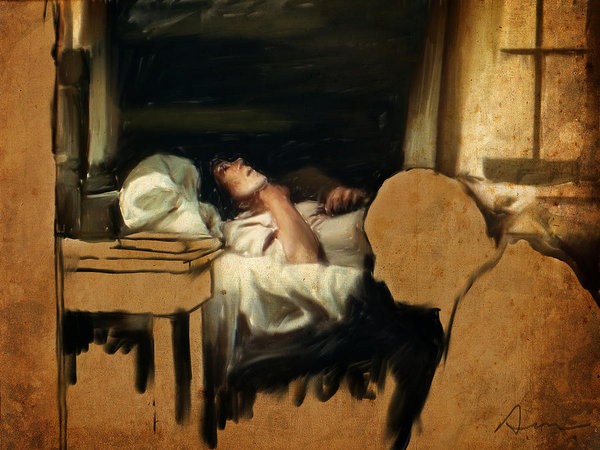 يرشق صادق بصره في السّقف. عنكبوت القلب تنسج شبكة من القصص والأغنيات حول المصابيح الصّغيرة للثّريّا، قد تكون المواساة الوحيدة لها في عزلتها القادمة. يثبّت بقايا روحه إلى رعشة صوتها تسري فيه همهمة الوجْفِ جنب توتّر الخوف على حبال الحنجرة. صوتها الآن نجمة صبحه البعيد، ستهدي الرّوح إليها حين تنغلق عليه ظلمة اللّيل اللاّنهائيّ. كتب في وصيّته أن تنام إلى جانبه فيُبعثان على هيئة ذيْنك الهيكلين المتعانقين. يبقى أن تجد الوصيّة من يقرأها.